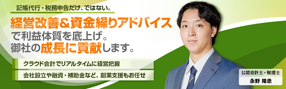 だからこそ、当事務所では、記帳代行や税務申告だけでなく、クラウド会計の導入、経営改善・資金繰りアドバイスまで一貫してサポートしているのです。