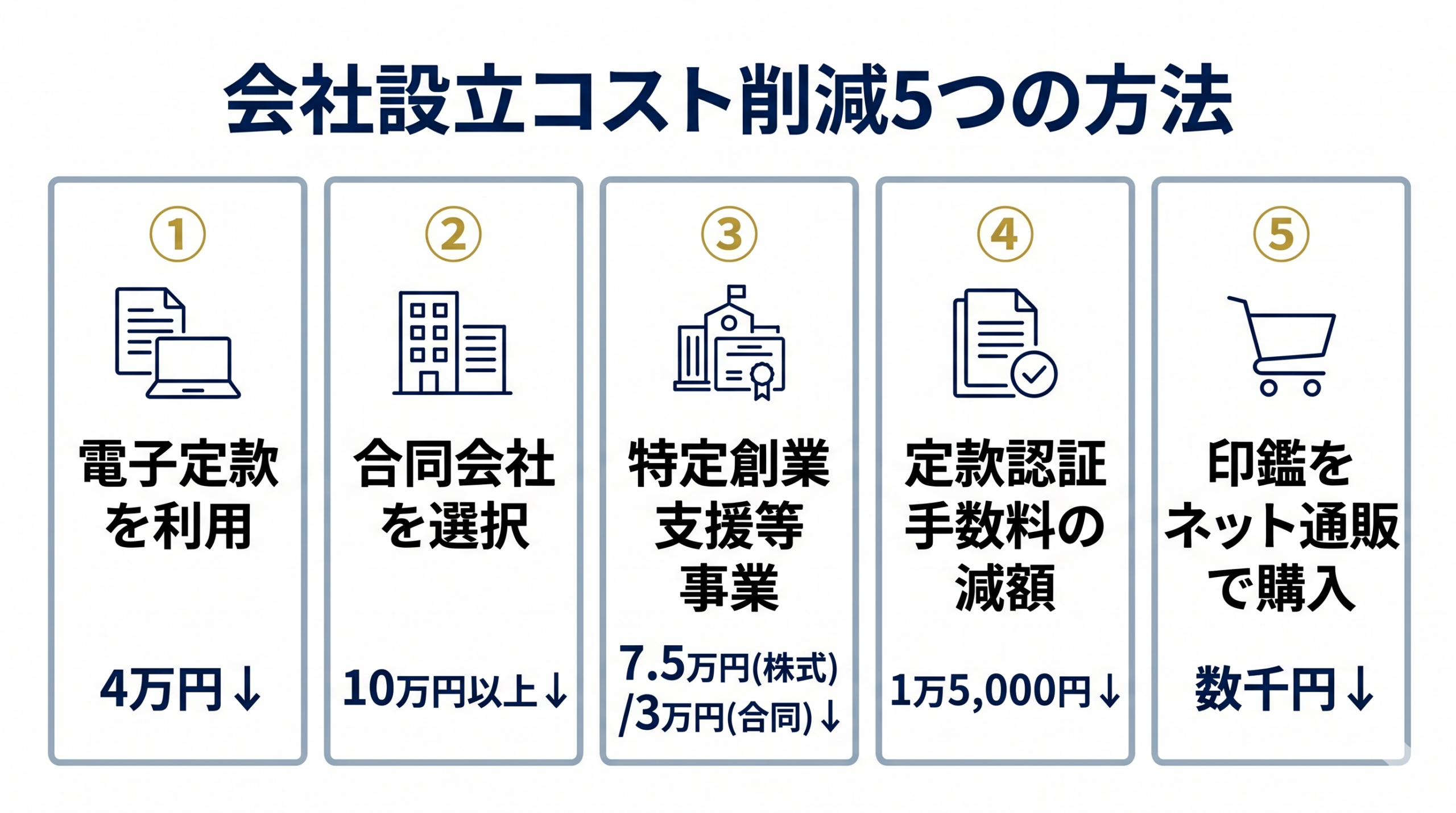 会社設立費用は、工夫次第で大きく削減できます。代表的な方法を紹介します。